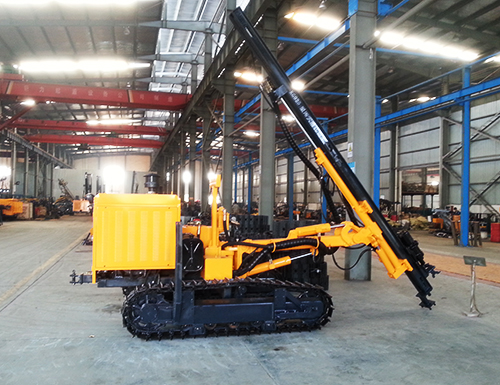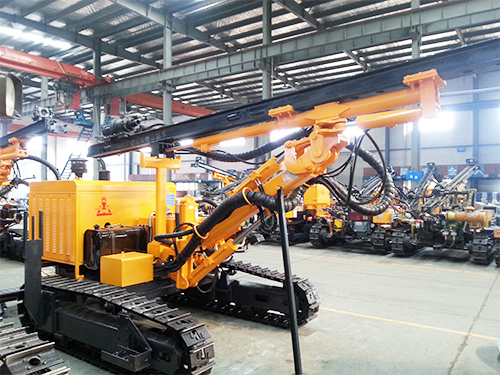 KG925/YC925 型露天潛孔鉆車以KG920B鉆車為基礎,對導軌、回轉器、履帶架、操作臺及整機布局等進行創(chuàng)新設計了,主要有以下特點: