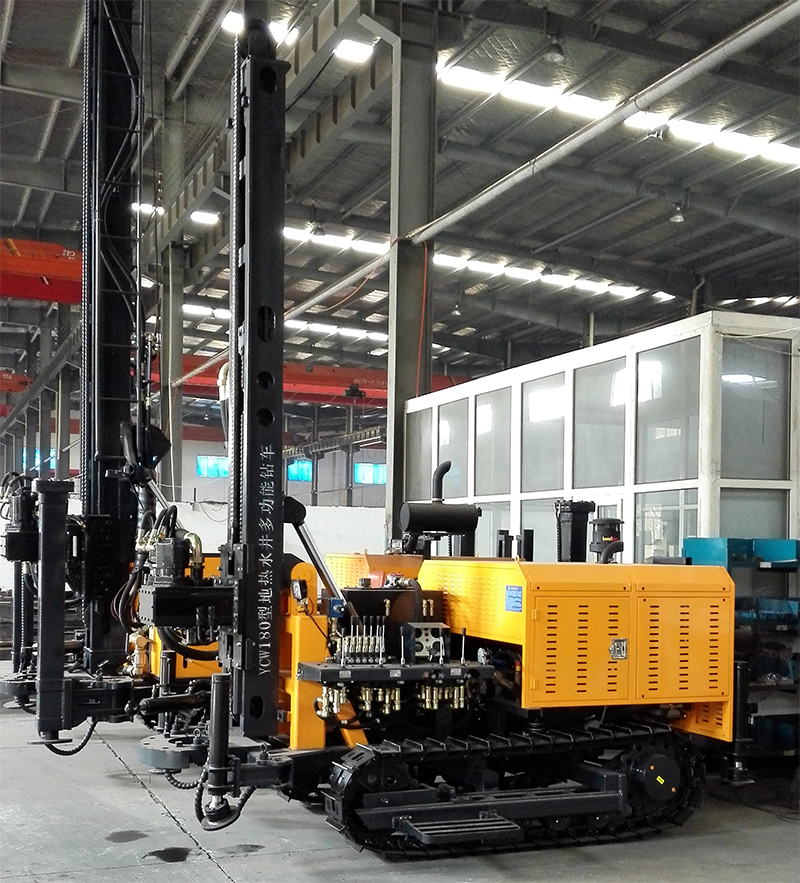 KW180/YCW180型地?zé)崴喙δ茔@車是一種輕型、高效、多功能的鉆鑿孔設(shè)備。具配備玉柴四缸國(guó)三發(fā)動(dòng)機(jī),有結(jié)構(gòu)先進(jìn)、使用方便、作業(yè)效率高、可靠耐用等特點(diǎn),廣泛適用于鉆鑿水井、農(nóng)業(yè)灌溉井、地?zé)峥照{(diào)孔及其他用途的井孔,尤其適用于山區(qū)和巖石地層的取水工程。該鉆車采用新型液壓技術(shù),配套大扭矩液壓馬達(dá)回轉(zhuǎn)以及大缸徑液壓油缸推進(jìn),大幅降低了勞動(dòng)強(qiáng)度,縮短了輔助時(shí)間,提高了施工效率和工程質(zhì)量。