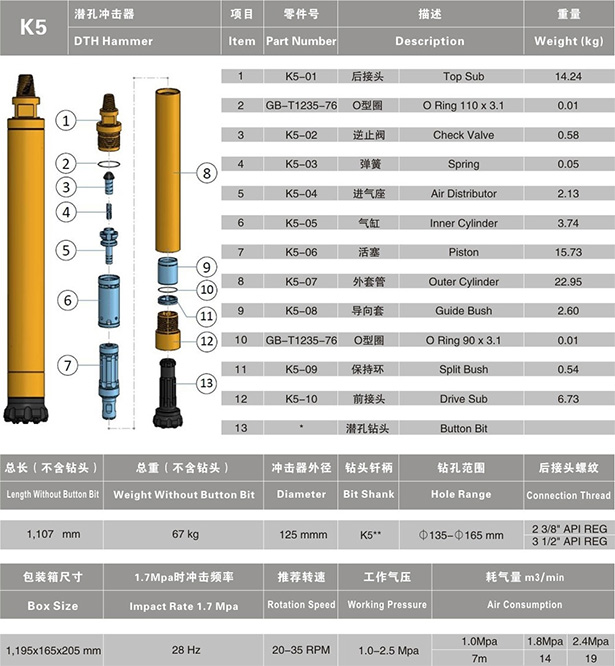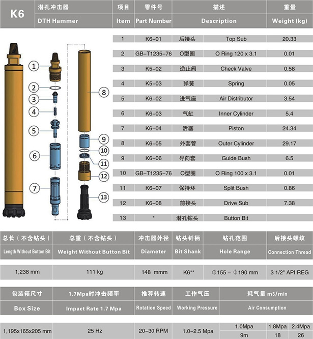 高風(fēng)壓沖擊器技術(shù)參數(shù)